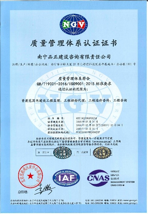 2018年5月,北京恩格威認(rèn)證中心的QES審核員到南寧品正進(jìn)行質(zhì)量管理體系、環(huán)境管理體系和職業(yè)健康安全管理體系(簡稱QHES管理)通過認(rèn)證審核工作。審核組認(rèn)為,南寧品正現(xiàn)行的QHES管理系統(tǒng)文件符合國際國內(nèi)有關(guān)強(qiáng)制性規(guī)定,適用于公司目前開展的各項(xiàng)業(yè)務(wù)。