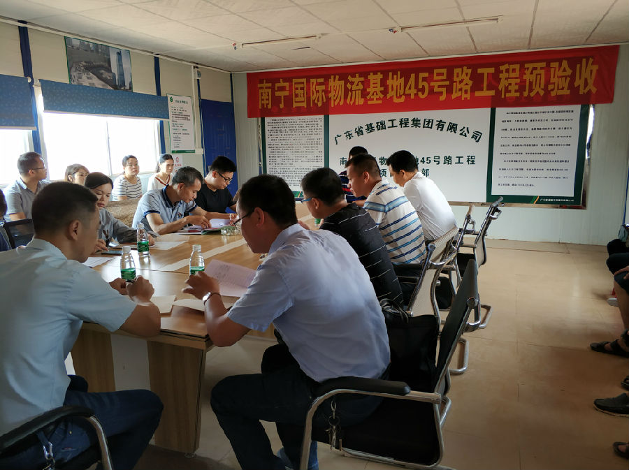 (本站訊 通訊員 葉莉雅)南寧國際物流基地45號路工程位于中國東盟國際物流基地西南部,為新建道路,含道路工程、排水工程(雨、污水)、交通工程、綠化工程、照明工程等施工。道路為南北走向,北起國際物流基地28#路,終點至銀海大道。道路等級為城市支路,設(shè)計速度為30km/h,道路紅線寬度24米,設(shè)計長度551.859米。除與28#路相交路口外,本道路與42號路相交路口、終點與銀海大道交叉口改造段均納入本次工程范圍,為此實施總長度為483.815米。