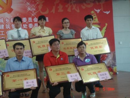 根據(jù)市城鄉(xiāng)建委有關(guān)文件精神,南寧品正黨支部高度重視,于“七一”前夕,精心組織開展豐富多彩的活動(dòng)慶祝建黨90周年,取得較好成效。一是組織員工參加市紀(jì)委慶祝建黨90周年暨“南寧清風(fēng)”反腐倡廉書畫攝影作品征稿活動(dòng),公司黨支部共報(bào)送一幅書法,8幅照片,作品以慶祝建黨90周年展黨的輝煌成就,頌清風(fēng)正氣揚(yáng)南寧發(fā)展成果為主題。二是組織10名員工參加市城鄉(xiāng)建委系統(tǒng)合唱隊(duì),隊(duì)員們遵守紀(jì)律,認(rèn)真排練。6月13日,市城鄉(xiāng)建委參加市直機(jī)關(guān)慶祝建黨90周年“綠城紅歌獻(xiàn)給黨”合唱比賽,獲三等獎(jiǎng)。三是組織選派李智、陳倩、黃綿全三名員工參加市城鄉(xiāng)建委系統(tǒng)慶祝建黨90周年黨的知識(shí)競(jìng)賽,獲預(yù)賽第一名,決賽優(yōu)勝獎(jiǎng)和優(yōu)秀組織獎(jiǎng)。四是,南寧品正黨支部與市建設(shè)建筑管理監(jiān)察支隊(duì)黨支部于7月1日在金滿園休閑觀光果園開展紀(jì)念建黨90周年暨“結(jié)對(duì)共建,先鋒同行”主題黨日活動(dòng)。雙方單位黨員、入黨積極分子、群眾代表等約70人參加活動(dòng)?;顒?dòng)內(nèi)容有重溫入黨誓詞、唱紅歌、黨史和廉政知識(shí)搶答、文體活動(dòng)等。