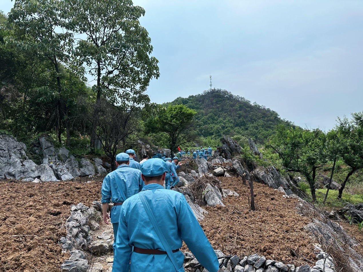 在灌陽(yáng)參觀(guān)湘江戰(zhàn)役新圩阻擊戰(zhàn)酒海井紅軍紀(jì)念園,黨員同志們懷著無(wú)比沉重的和崇敬的心情,聆聽(tīng)了當(dāng)年紅軍血灑湘江、氣壯山河的悲壯歷史。隨后廣大黨員干部,通過(guò)“穿一套紅軍服,走一段紅軍路”跟隨革命腳步,重走紅軍長(zhǎng)征路,沿著革命先輩走過(guò)的崎嶇道路,一步一腳印,體會(huì)到了湘江戰(zhàn)役戰(zhàn)士的艱辛不易,一路追尋英雄將士們的紅色長(zhǎng)征足跡,重溫那段難忘的歲月,在傳承紅色血脈的熏陶洗禮中,進(jìn)一步傳承紅色基因,賡續(xù)紅色血脈。